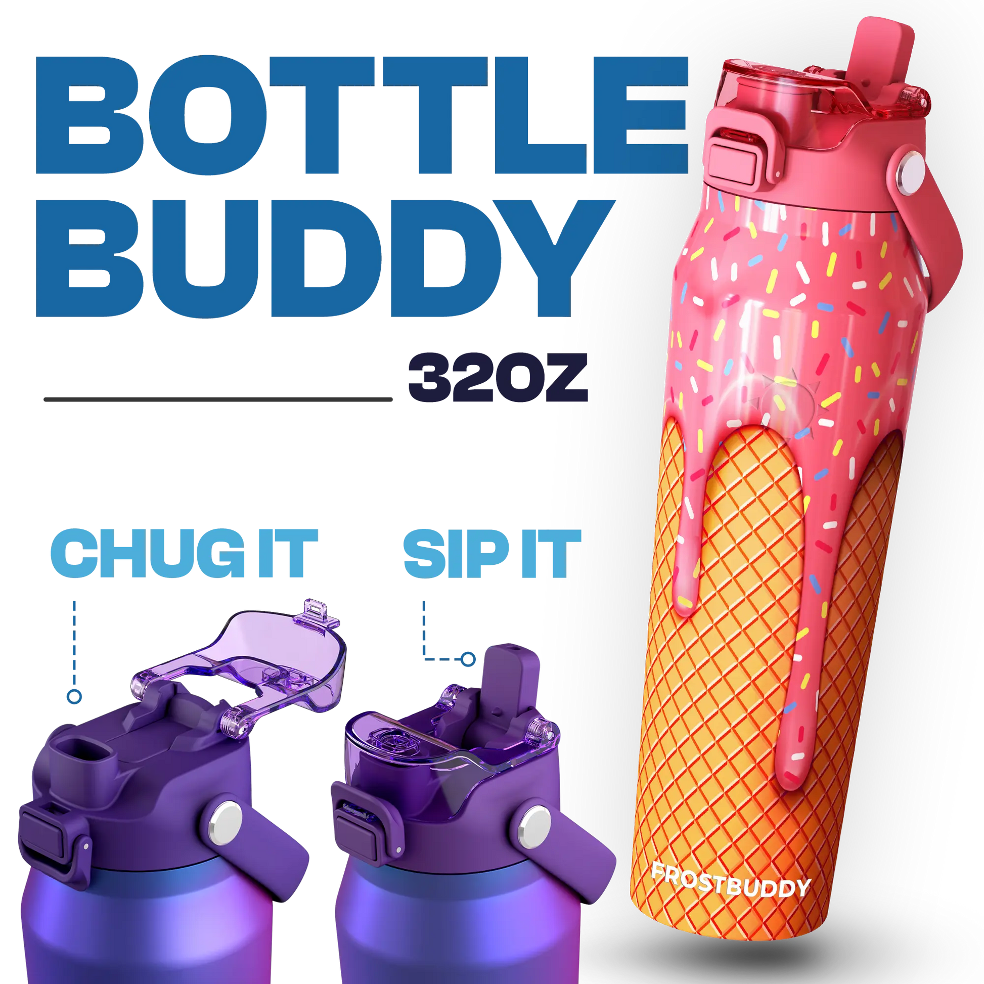Bottle Buddy - Dual Function lid Water Bottle - Stainless Steel - Double Wall Insulated